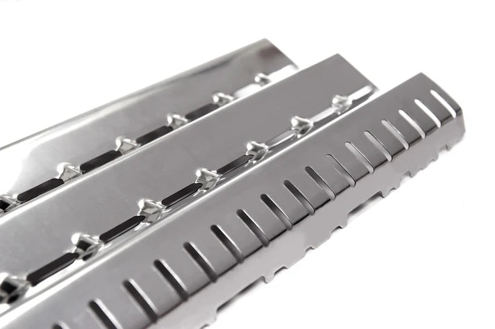 This durable stainless steel Flav-R-Wave is an excellent replacement for worn out and crumbling briquettes. Fits Broil King, Broil-Mate and Sterling 40,000 and 44,000 BTU gas grills. The stainless steel Flav-R-Wave completely protects the burner and distributes heat evenly throughout the cook box. As drippings fall on the heat plate, they are vaporized giving great barbecued flavor. 18 in. x 11.2 in.